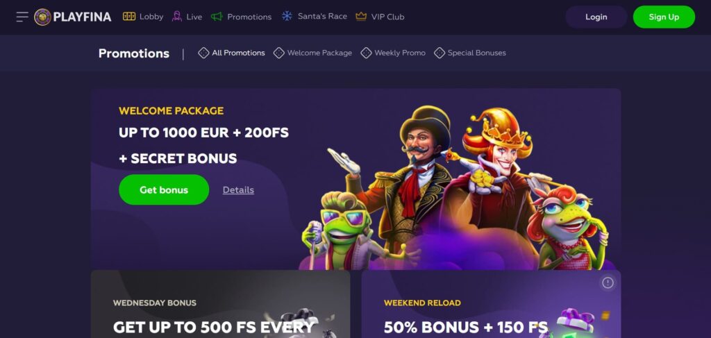 Step 2: Once your account is created, log in to the PlayFina platform and navigate to the promotions section.